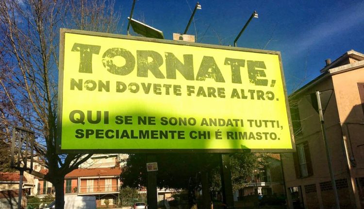 ACRI :: 29/01/2021 :: Anche ad Acri, in provincia Cosenza, è apparso un cartellone con la frase di Franco Arminio, poeta e paesologo, che tanto ha fatto discutere nei giorni scorsi nella provincia di Salerno. Sembrerebbe infatti che si stia alzando l’attenzione di varie comunità sul triste e ben noto fenomeno della fuga dei cervelli e sulla valorizzazione dei piccoli territori. Il manifesto recita: “Tornate, non dovete fare altro. Qui se ne sono andati tutti, specialmente chi è rimasto”.