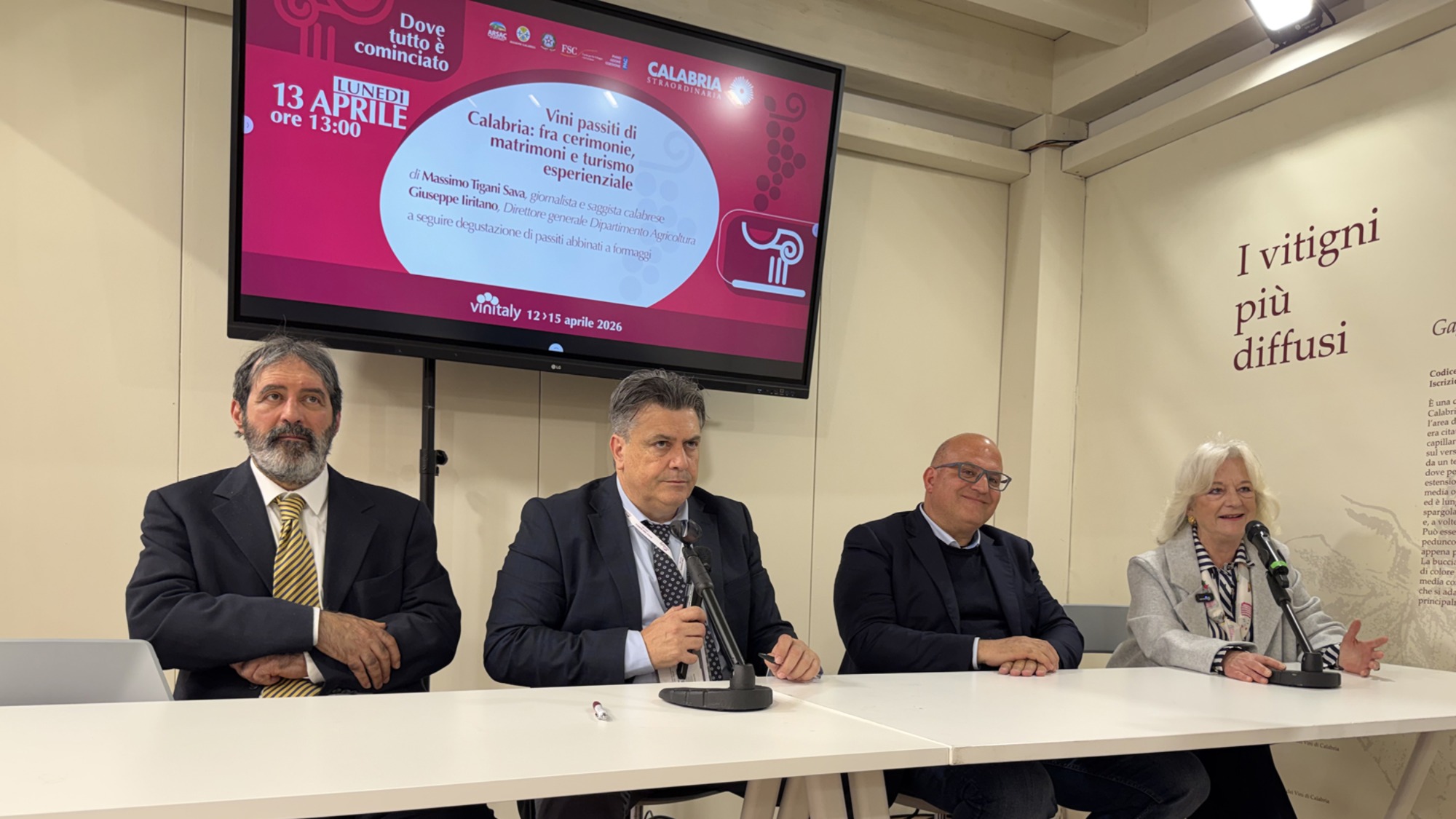 CATANZARO :: 23/04/2026 :: In occasione della recente edizione di Vinitaly è stato presentato un articolato e ambizioso “Progetto Originale per il rilancio dei Vini Passiti di Calabria fra cerimonie, matrimoni e turismo esperienziale”. L’iniziativa porta la firma di Massimo Tigani Sava, giornalista e saggista impegnato da anni nello studio delle radici storico-culturali e identitarie dell’agroalimentare e della vitivinicoltura calabrese.