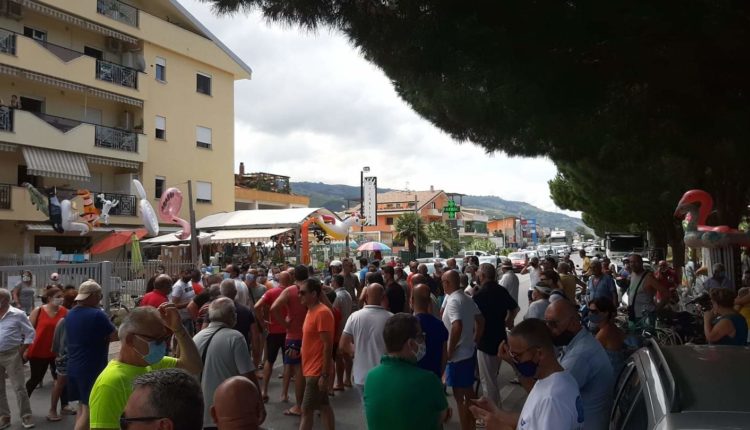 AMANTEA :: 13/07/2020 :: Continua la protesta dei cittadini di Amantea (Cs) contro l’accoglienza dei 13 migranti risultati positivi al Covid e trasferiti nel comune in provincia di Cosenza dopo lo sbarco a Roccella Jonica. Un centinaio di persone si sono ritrovate davanti al comune per esprimere il loro dissenso. “Stiamo chiedendo per tutto il territorio lo spostamento di queste unità, perché Amantea non è un centro Covid. La struttura che li ospita non è idonea ad ospitare queste persone purtroppo malate”, spiega Tommaso Signorelli, portavoce della protesta.