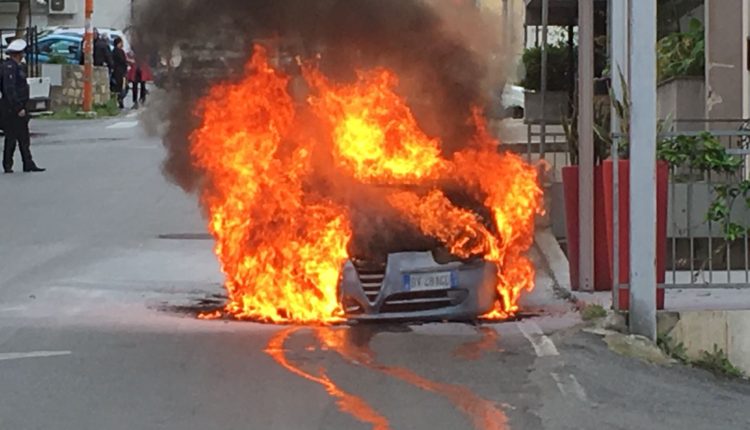 BELVEDERE MARITTIMO :: 09/05/2018 :: Un auto, Alfa Romeo 147, ha preso fuoco questa mattina nel centro della Marina di Belvedere Marittimo (Cs), non è di natura dolosa.