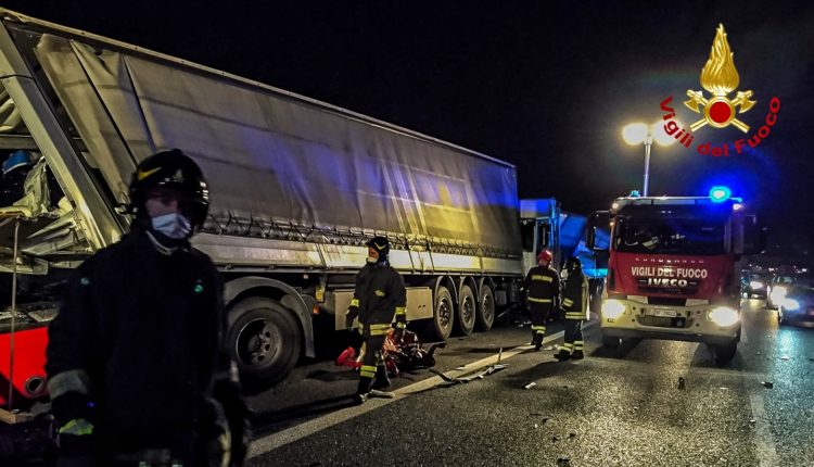 COSENZA :: 03/03/2022 :: Su autostrada A2 – Intervento per incidente stradale in direzione nord tra le Uscite Cosenza Sud/Cosenza Nord. Da alcuni minuti il personale VVF della sede Centrale di Cosenza è impegnato sul tratto di autostrada A2 per incidente stradale. l’incidente riguarda il tamponamento tra un autocarro ed un autoarticolato. Il conducende del veicolo che seguiva, incastrato, era già stato estratto e consegnato ai sanitari per quanto di competenza. Al momento si transita su una sola corsia.