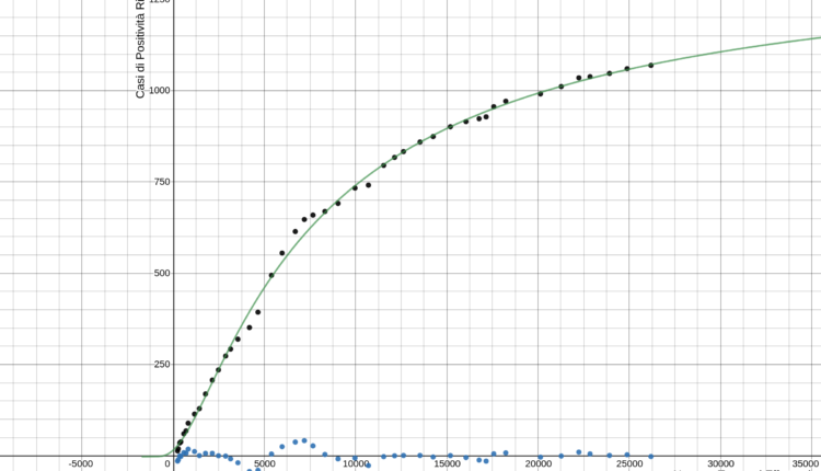 Il modello, realizzato da DielTech Srl, continua ad essere in perfetta sincronia con i dati reali, con un livello di attendibilità che oggi raggiunge quota 99,81% ed un numero totale di contagi previsto che rimane stabile a quota 1398 unità.