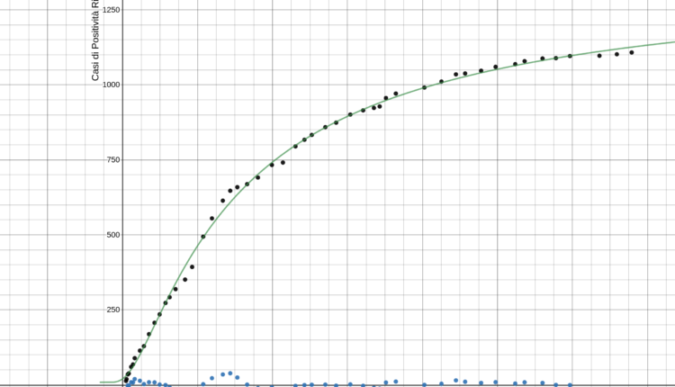 Grafico dei contagi al 30 aprile 2020, modello matematico realizzato da DielTech Srl