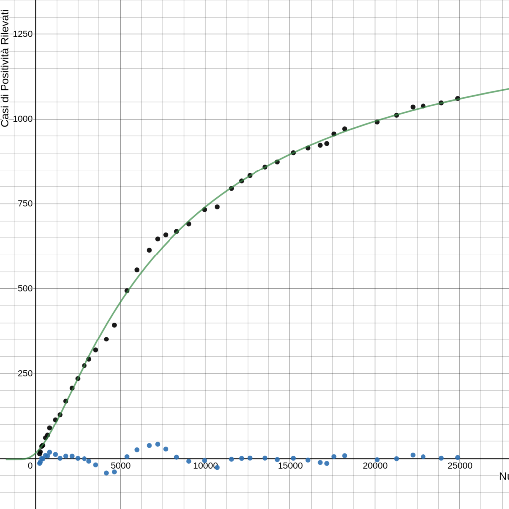 Il modello, realizzato da DielTech Srl, continua ad essere in perfetta sincronia con i dati reali, con un livello di attendibilità che oggi raggiunge quota 99,80% ed un numero totale di contagi previsto che rimane stabile a quota 1398 unità.