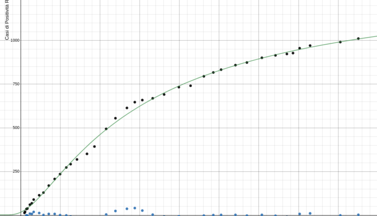 Il modello, realizzato da DielTech Srl, continua ad essere in perfetta sincronia con i dati reali, con un livello di attendibilità che oggi raggiunge quota 99,77% ed un numero totale di contagi previsto pari a 1386 unità.