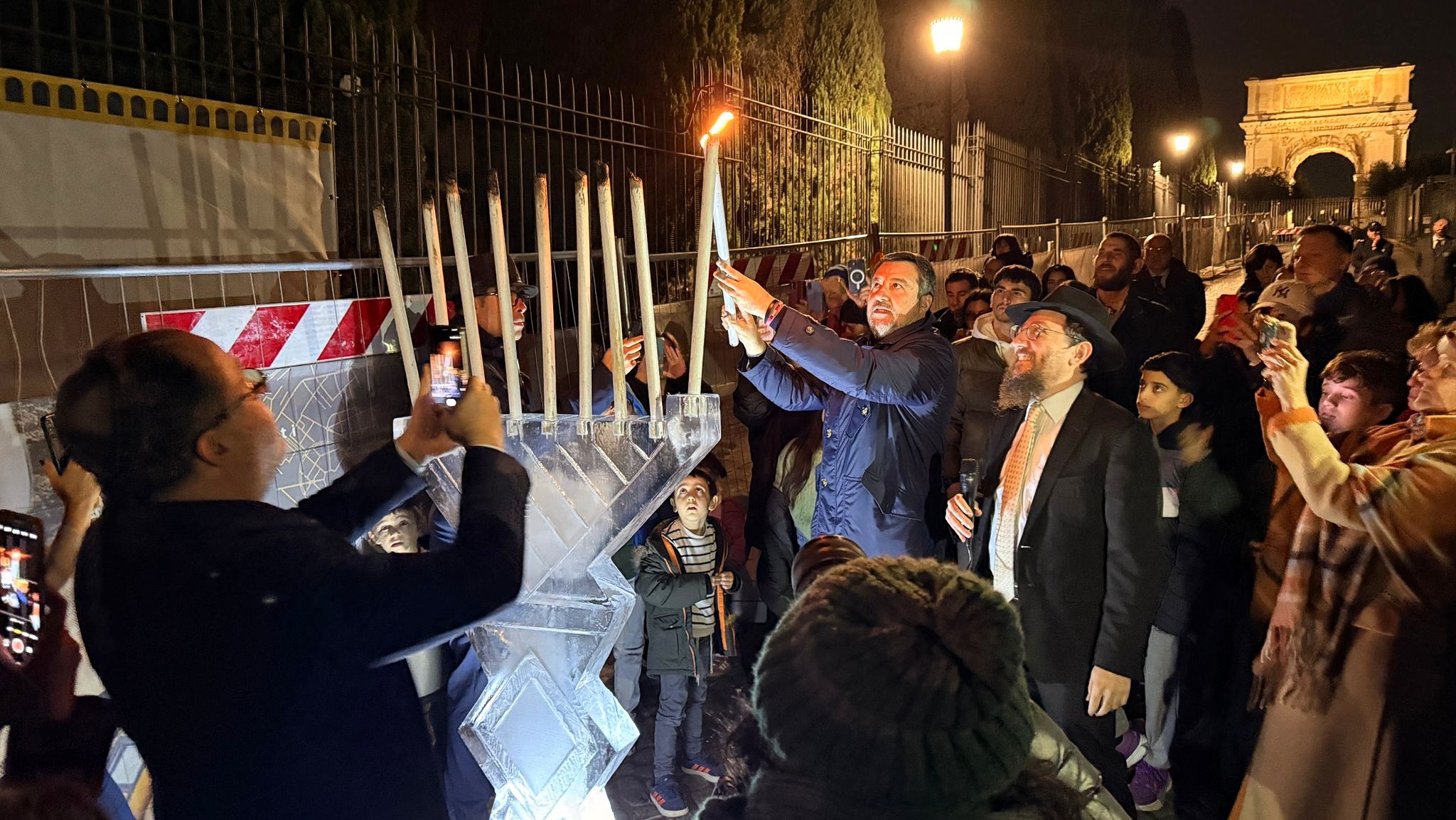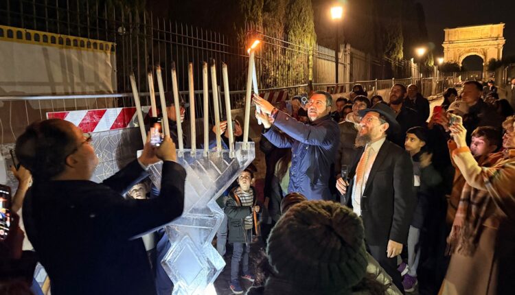 A seguire, Salvini ha acceso il primo lume della chanukià.