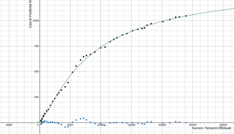 Grafico dei contagi al 21 aprile 2020, modello matematico realizzato da DielTech Srl