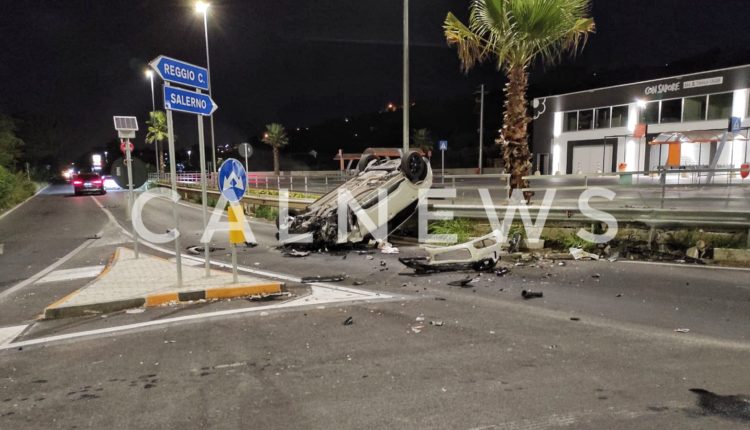 Diamante: auto con a bordo giovani si ribalta sulla Statale 18.
