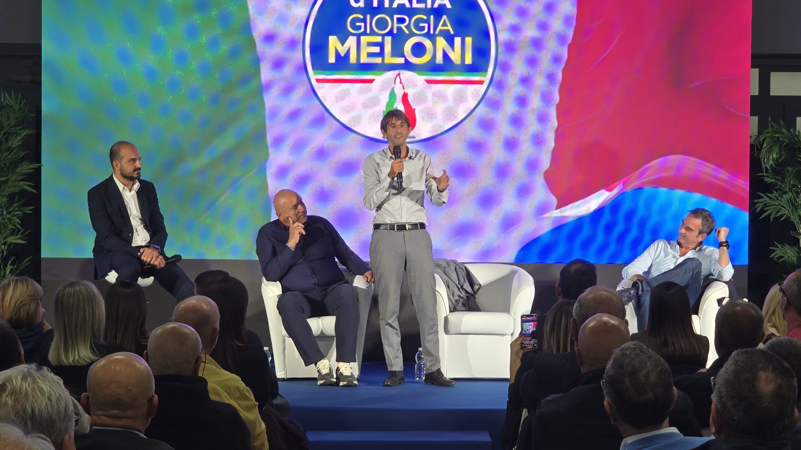 PRAIA A MARE :: 02/10/2025 :: Presso il Palazzo delle Esposizioni di Praia a Mare (Cs) si è svolta una partecipata manifestazione politica di Fratelli d’Italia, che ha visto la presenza di numerosi esponenti istituzionali e rappresentanti del territorio. All’incontro hanno preso parte Giovanni Donzelli, dirigente nazionale del partito, il sindaco di Praia a Mare Antonino De Lorenzo e il candidato alla presidenza della Regione Calabria Roberto Occhiuto.
