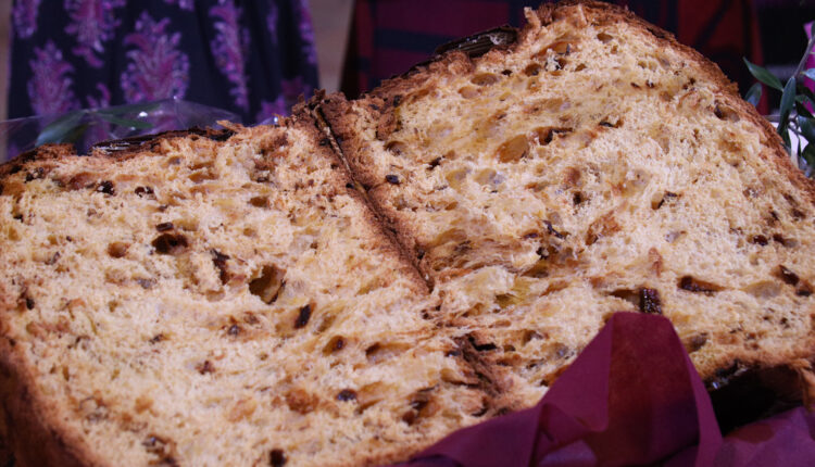 Francesco Mastroianni a Tropea con un panettone di 5 kg alla cipolla rossa.