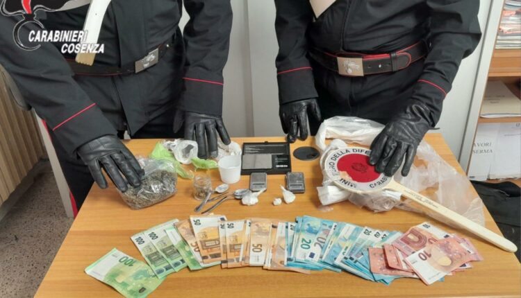 I militari hanno trovato droga anche in casa, per il totale di oltre 10 grammi di cocaina, nonché alcuni grammi di marijuana, bilancini, materiale per il taglio ed il confezionamento e più di 1700 € in banconote di vario taglio.