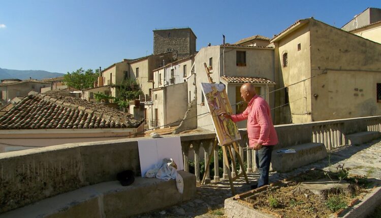 Un aroma conosciuto riempie gli stretti vicoli e ci conduce ai tanti piccoli forni domestici, celati nelle case del borgo, dove le fascine ardono e la farina di grani antichi cresciuta con il lievito madre, tramandato da generazioni, regala un pane diverso da tutti gli altri in quello che è conosciuto come paese del pane. Il paesaggio diventa ispirazione tra le mani del pittore Franco Azzinari. Le forme e la luce assolata, con i colori delicati dalle mille sfumature, finiscono in una tela improvvisata su un cavalletto nella piazza del borgo. Gli artisti spesso si attraggono tra loro e nella luce netta del pomeriggio Joshua Gaspero, l’americano, appare nella piazzetta. E il pittore del vento lascia il suo paesaggio per regalare all’amico il suo ritratto.