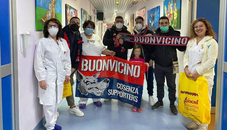 CETRARO :: 06/01/2023 :: Nel giorno dell’Epifania, il gruppo “Buonvicino Presente” ha visitato il reparto di pediatria dell’ospedale civile di Cetraro (Cs), portando gioia ai giovani pazienti. Nonostante la percezione negativa sugli ultras, dietro la loro passione per il calcio emergono valori di umanità e solidarietà. La dedizione al bene verso il prossimo, specialmente verso i più deboli, è un costante richiamo ai principi fondamentali. Piccoli gesti come questi contribuiscono positivamente al nostro mondo, come ci ricorda un eroe contemporaneo: “sono quelle cose che alla fine ti rimangono”.