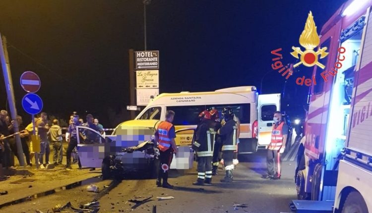 SELLIA MARINA :: 27/09/2021 :: È di due deceduti ed un ferito grave il bilancio dell’incidente stradale avvenuto alle ore 00.05 circa sulla SS 106 al crocevia in prossimità del km 199, 200 nel comune di Sellia Marina. Due le vetture coinvolte in un frontale una Kia Rio ed una Fiat Panda di proprietà di una nota ditta di vigilanza privata. Deceduti sul colpo i due occupanti della Fiat Panda mentre ferito in modo grave il conducente della Kia Rio. Quest’ultimo estratto dalle lamiere dell’abitacolo veniva affidato al personale sanitario del Suem118 per le cure del caso e successivo trasporto presso struttura ospedaliera. Intervento dei vigili del fuoco del comando di Catanzaro distaccamento di Sellia Marina è valso inoltre alla messa in sicurezza del sito e delle vetture.