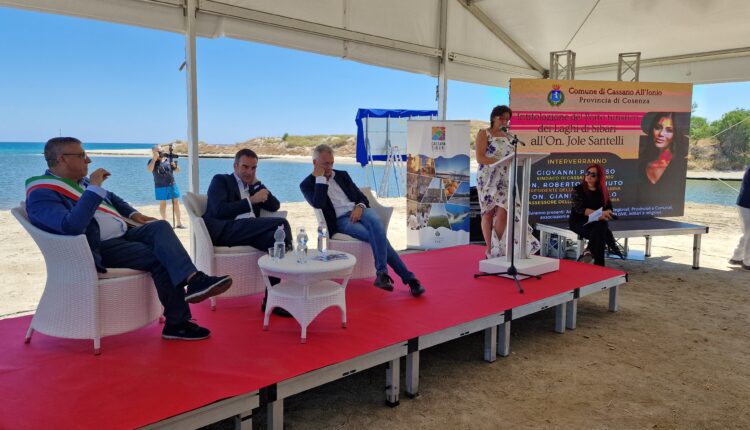 CASSANO ALLO IONIO :: 04/08/2023 :: Il porto turistico dei Laghi di Sibari, a Cassano allo Ionio, è stato intitolato a Jole Santelli, prima presidente donna della Regione, prematuramente scomparsa. Alla cerimonia di intitolazione, fortemente voluta dal sindaco Gianni Papasso, e dalla giunta, hanno partecipato, tra gli altri, il governatore Roberto Occhiuto, l’assessore regionale all’Agricoltura, Gianluca Gallo, e le sorelle di Jole Santelli, Paola e Roberta. “Oggi è un momento di festa in onore di Jole Santelli – ha detto Papasso – un’amica sul piano personale, un’amica di Cassano, una persona bella, per bene e speciale, a cui io raccomandai le sorti di Cassano nella sua veste di presidente della giunta regionale, soprattutto per quanto atteneva la questione dell’insabbiamento del canale dello Stombi, l’unica strada, via mare, di entrata e di uscita dal complesso nautico dei Laghi di Sibari. Lei capì e, a differenza di altre amministrazioni, deliberò un contributo di circa 10 milioni di euro”. “Sono molto riconoscente al sindaco di Cassano – ha detto il presidente Occhiuto – per aver voluto organizzare questa manifestazione. Il compito di chi governa un territorio è quello di farlo ricordando però che il passato migliore va sempre recuperato e deve essere di insegnamento e di stimolo per costruire il futuro che le popolazioni di questo territorio meritano. L’intitolazione a Jole Santelli è un gesto di doverosa attenzione per ricordare una straordinaria presidente che ha cominciato prima di me a comunicare un tipo di Calabria diversa”. “Oggi è una giornata di festa per Cassano – ha detto l’assessore Gallo – e per la Calabria. Jole amava il mare, la Calabria. Amava quello che faceva. Ricordarla così è un atto di merito nei confronti di una grande donna, un grande politico, un grande presidente. Nei mesi in cui è stata presidente segnando una discontinuità netta rispetto al passato”. “Noi siamo veramente onorate ed emozionate – ha detto Paola Santelli a nome anche della sorella Roberta – perché sapere che questa meravigliosa infrastruttura sia intitolata a Jole per noi è un grande motivo d’orgoglio. Jole credeva molto nella Calabria, credeva molto nel rilancio dei Laghi di Sibari”.