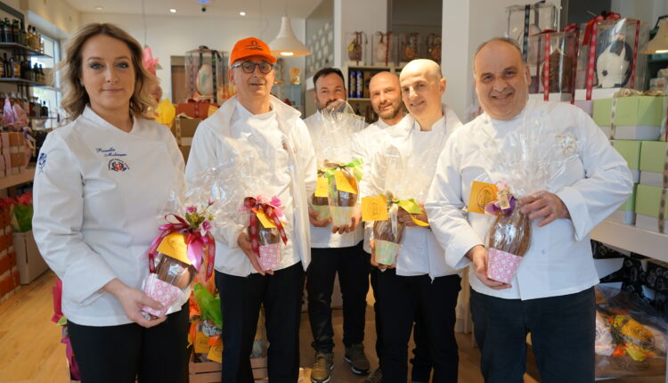 LAMEZIA TERME :: 31/03/2023 :: Si è tenuta presso “Casa Mastroianni” di Lamezia Terme (Cz) la cerimonia di consegna delle uova di cioccolato per l’iniziativa “Ponti di cioccolato”, alla presenza del gelatiere e titolare dell’azienda Francesco Mastroianni; dello chef Domenico Origlia, presidente APC CZ; dello chef Francesco Corapi, presidente DSE regionale; dello chef Luca Caligiuri, responsabile eventi e formazione APC CZ; della chef Rossella Molinaro, responsabile Lady Chef APC CZ (Lamezia Terme) e dello chef Domenico Antonio Rullo, responsabile team e competizioni APC CZ.