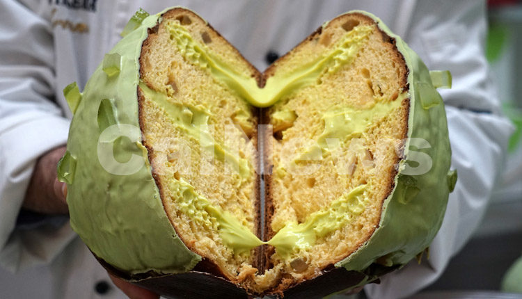 MARCELLINA :: 09/12/2020 :: Si avvicinano le feste natalizie e la nota pasticceria Aronne di Marcellina, frazione del comune di Santa Maria del Cedro (Cs), guidata dal maestro pasticcere Gino Barone, ha già realizzato il suo panettone artigianale al cedro. Una tradizione nella Riviera dei Cedri, dove nasce il prezioso agrume, il “Cedro Diamante”. Un panettone soffice, riempito con una crema e decorato con cedro candito.