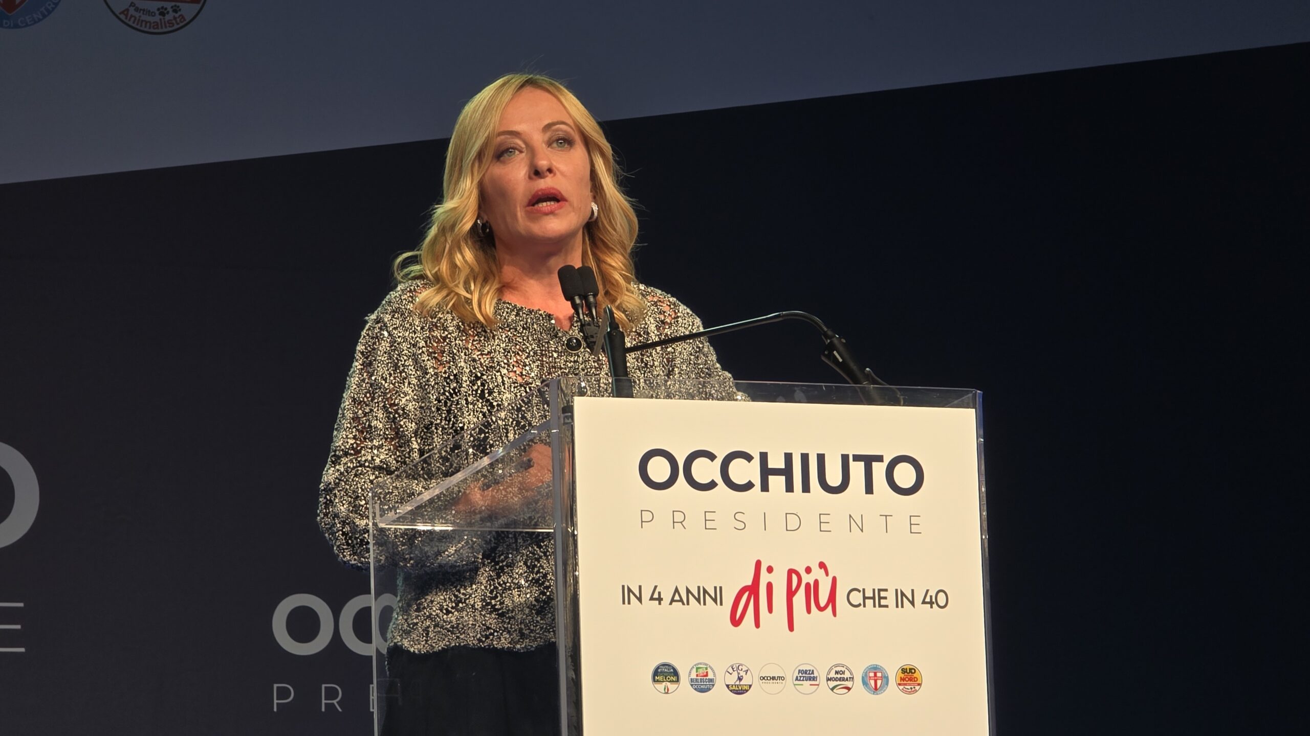 LAMEZIA TERME :: 30/09/2025 :: In occasione della convention dei leader del centrodestra a Lamezia Terme (Cz), a sostegno di Roberto Occhiuto, candidato presidente della Regione Calabria, Giorgia Meloni ha voluto sottolineare il percorso di crescita di Fratelli d’Italia e la sua fiducia negli italiani.