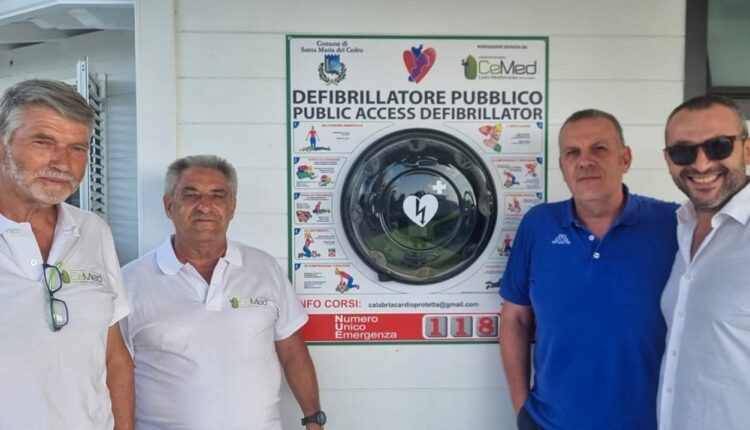 SANTA MARIA DEL CEDRO :: 02/08/2023 :: Il Consorzio Europeo del cedro mediterraneo – Terre di Calabria ha donato un defibrillatore alla comunità di Santa Maria del Cedro. La cerimonia di consegna del dispositivo elettromedicale che consente l’esecuzione della defibrillazione elettrica, è avvenuta alcuni giorni fa, presso lo stabilimento balneare Pierino sul lungomare Perlasca della cittadina alto tirrenica dove, grazie alla disponibilità del proprietario il defibrillatore è stato posizionato per offrire un pronto intervento qualora si verificassero casi di arresto cardiaco nelle vicinanze.