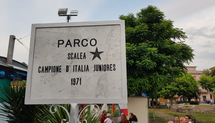 SCALEA :: 21/06/2018 :: Una vasta area nel centro di Scalea (Cs), attualmente adibita a parco giochi, è stata intitolata alla memoria sportiva dello Scalea Calcio con il nome “Scalea Campioni d’Italia Juniores 1971”. Alla cerimonia hanno partecipato i rappresentanti delle istituzioni locali e tanti sportivi e cittadini, in particolare coloro che hanno rappresentato il successo calcistico e sportivo.