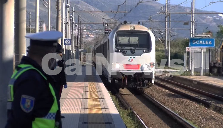 SCALEA :: 16/04/2020 :: Quasi tutti i treni, specialmente quelli a lunga percorrenza, viaggiano vuoti a causa dell’emergenza coronavirus, i carabinieri della Compagnia di Scalea, guidati dal capitano Andrea Massari e gli agenti della polizia locale, controllano gli arrivi e le partenze alla stazione ferroviaria di Scalea (Cs). Il treno Intercity 560 di Trenitalia, delle 17.42, proveniente da Reggio Calabria Centrale e diretto a Roma Termini, oggi viaggiava completamente vuoto, nessuno e sceso ne salito sul treno, per questo motivo le forze dell’ordine non hanno dovuto effettuare nessun controllo sui passeggeri.