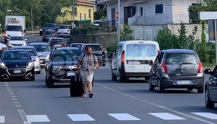 Ogni giorno sono tanti i commenti sui social di persone ed imprenditori che lamentano situazioni poco decorose per la città, nei giorni sorsi si è già parlato di Scalea e fatti di inciviltà continuano in modo incontrollato. Questa mattina l’ennesimo evento, un persona con al seguito una valigia di grandi dimensioni, camminava indisturbata sulla SS 18, causando una lunga coda e non consentendo alcuna manovra di sorpasso a gli automobilisti in transito, il fatto è accaduto intorno alle ore 9:00.