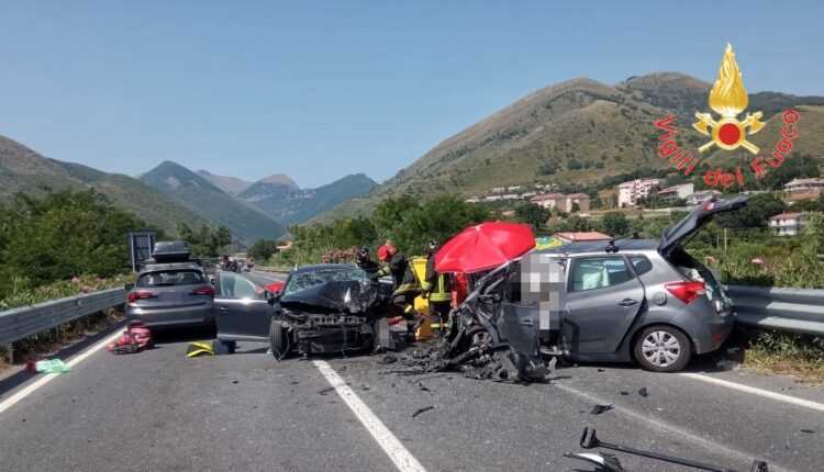 TORTORA :: 13/07/2023 :: E’ di un morto e 8 feriti tra cui un bambino il bilancio di un violento incidente verificatosi nel pomeriggio in Calabria sulla SS 18 tirrenica inferiore nel comune di Tortora (Cs). A scontrarsi, per cause in corso di accertamento, una Fiat Tipo, una Renault Megane ed una Hyundai. Sul posto, oltre ai mezzi di soccorso sanitario, sono arrivate squadre di vigili del fuoco del distaccamento di Scalea che hanno estratto la vittima, una donna, ed i feriti, tra cui una persona rimasta incastrata tra le lamiere. Sul posto anche l’elisoccorso. La statale è stata chiusa al transito in entrambe le direzioni.
