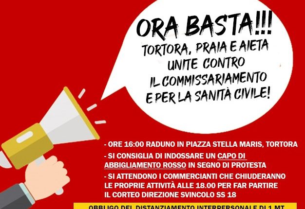 Ci ritroveremo quest’oggi alle ore 16.00 in Piazza Stella Maris in Tortora, dove subito dopo le 18.00 partirà il corteo pacifico di protesta. Una protesta che vuole dar voce alla mancanza di sanità, agli ospedali chiusi e a ciò che ieri siamo stati dichiarati, ovvero zona rossa.