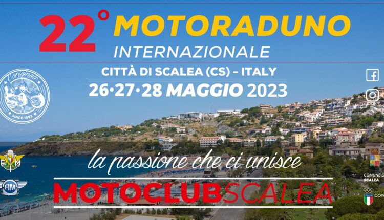 SCALEA :: 24/05/2023 :: Il 26, 27 e 28 maggio si terrà a Scalea, in provincia di Cosenza, la 22esima edizione del “Motoraduno Internazionale Città di Scalea”. Come in ogni edizione ci saranno spettacoli ed eventi, musica live, ma anche spettacoli attrazioni. Le iscrizioni partiranno da venerdì 26 alle ore 8:30.